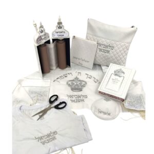 סט חלאקה פרימיום דגם כתר רקמה בכסף כיסוי לטלית ולתלתל